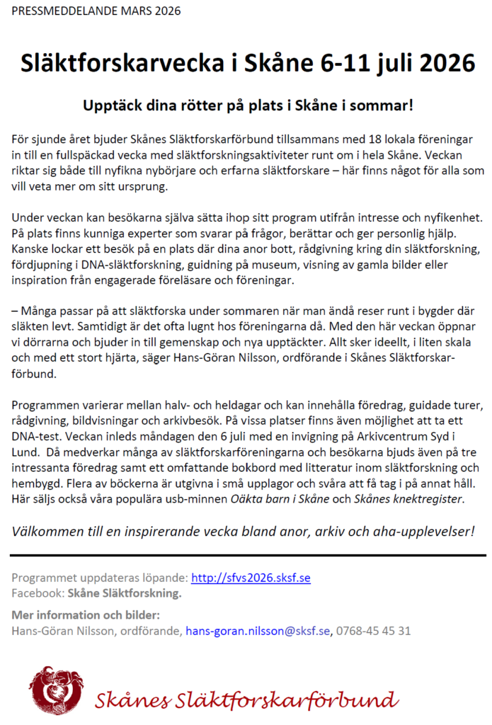 Släktforskarvecka Skåne 2026